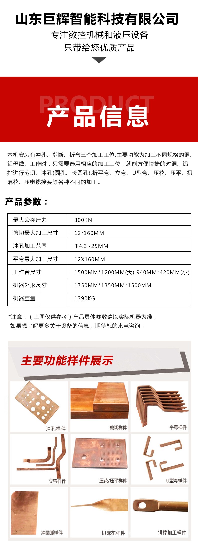 山東巨輝智能科技有限公司專注研發生產數控母線沖剪機、母排折彎機、銅鋁排加工設備、銅母銑角機等一站式母線加工解決方案,提供定制化服務,還有著數控自動排線機、自動繞線機、沖剪彎一體機 等一系列產品,專業生產高品質、高效率、高精度的母線加工設備,服務全球電力電氣、軌道交通、數據中心行業客戶,是您可靠的設備生產供應商。聯系電話(微信同號):15562687701
